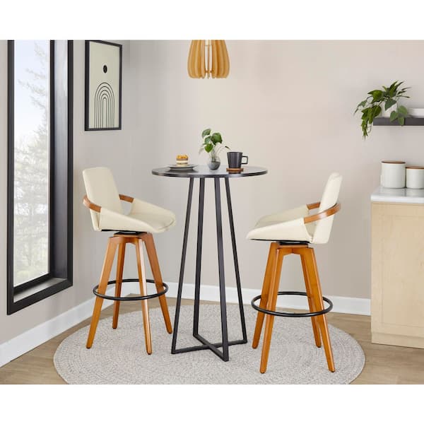 Cosmo 29 in. Cream Faux Leather, Walnut Bamboo, and Black Metal Fixed-Height Bar Stool