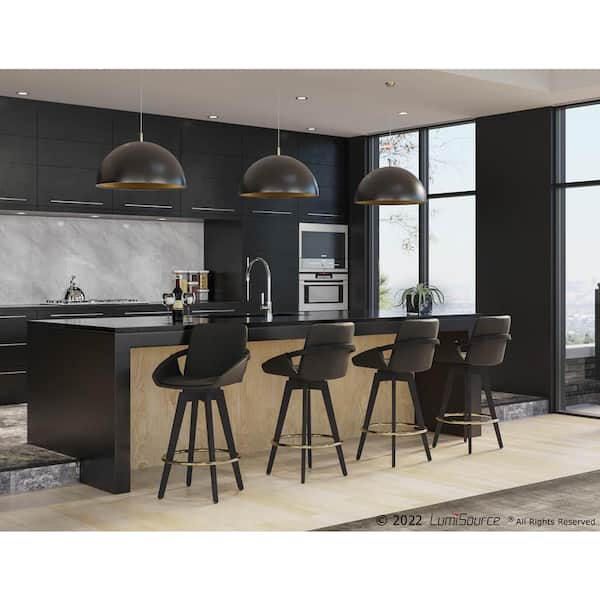 Cosmo 37 in. Black Faux Leather and Black Wood High Back Counter H Bar Stool with Round Gold Footrest (Set of 2)