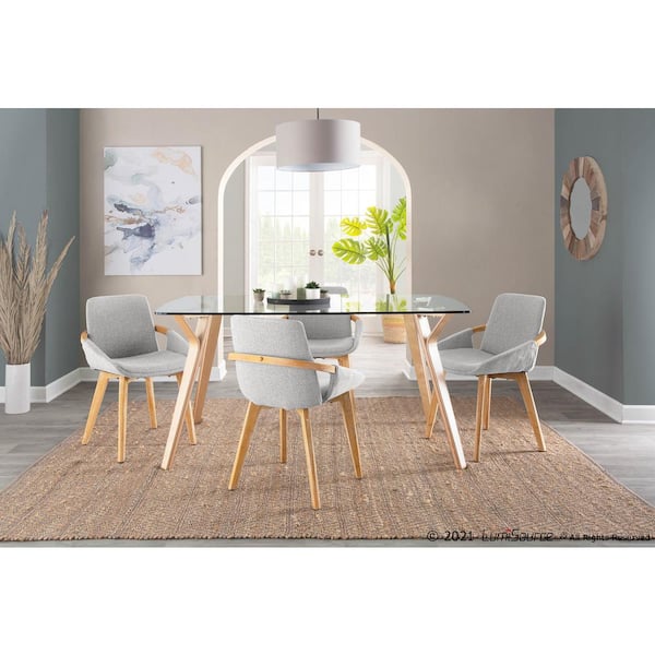 Cosmo Light Grey Noise Fabric and Natural Wood Dining Side Chair