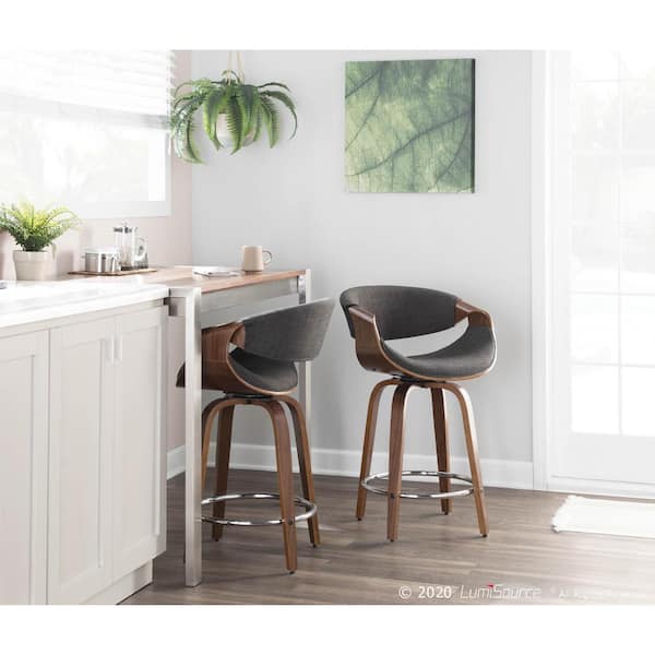 Curvini 34.5 in. Counter Height Bar Stool in Charcoal Fabric and Walnut Wood (Set of 2)