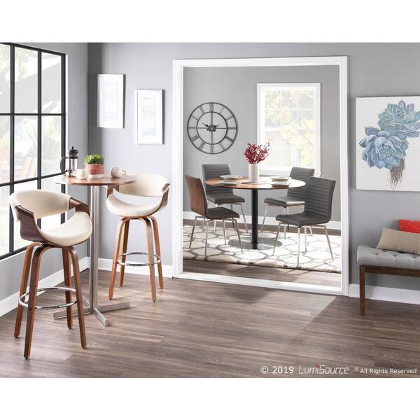 Curvini 40 in. Cream Fabric and Walnut Wood High Back Bar Stool with Round Chrome Footrest (Set of 2)