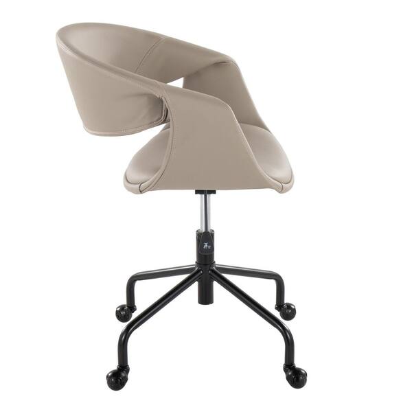 Curvo Faux Leather Upholstered Task Chair 34 in. Black Metal and Light Grey Faux Leather with Nonadjustable Arms