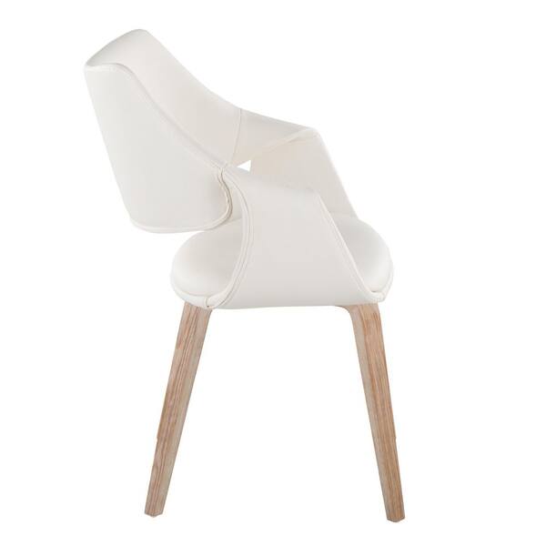 Curvo Whitewashed Wood and White Faux Leather Highback Upholstered Chair (Set of 2)