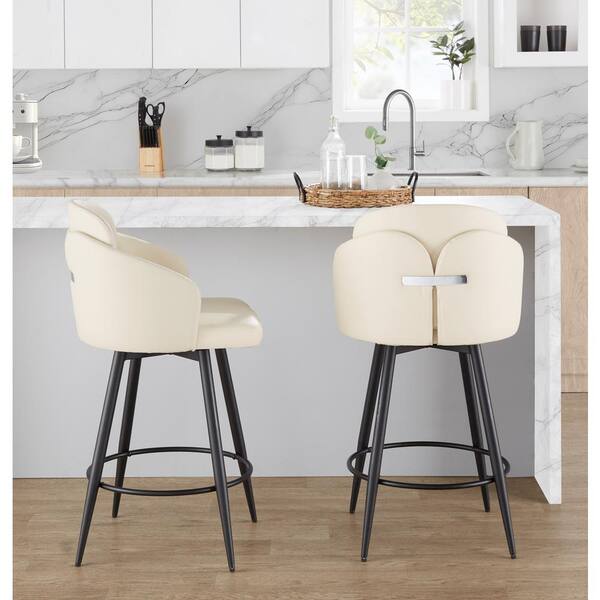 Dahlia 25 in. Cream Faux Leather and Matte Black Metal Fixed-Height Counter Stool (Set of 2)