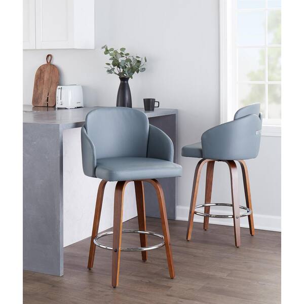 Dahlia 37 in. Grey Faux Leather and Walnut Wood Counter Height Bar Stool (Set of 2)