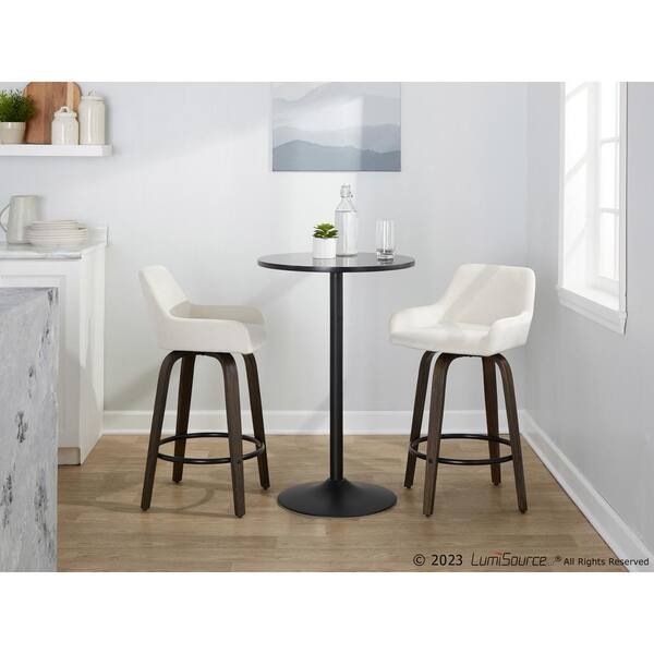 Daniella 25.5 in. White Velvet, Walnut Glazed Wood and Black Metal Fixed-Height Counter Stool (Set of 2)
