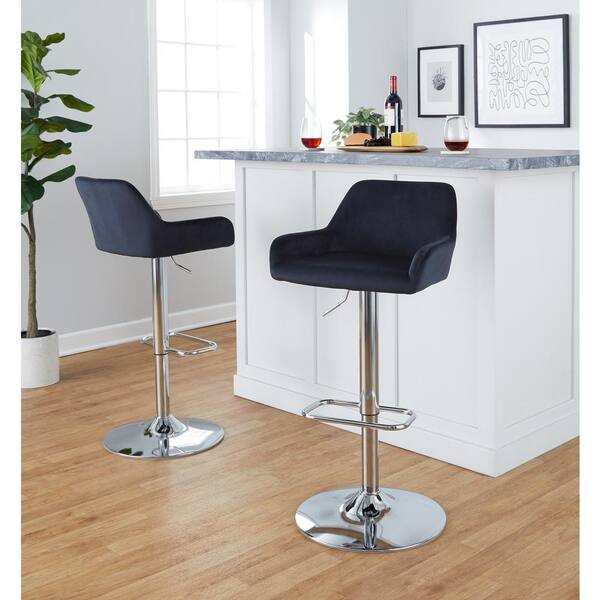 Daniella 32.25 in. Black Velvet and Chrome Metal Adjustable Bar Stool (Set of 2)
