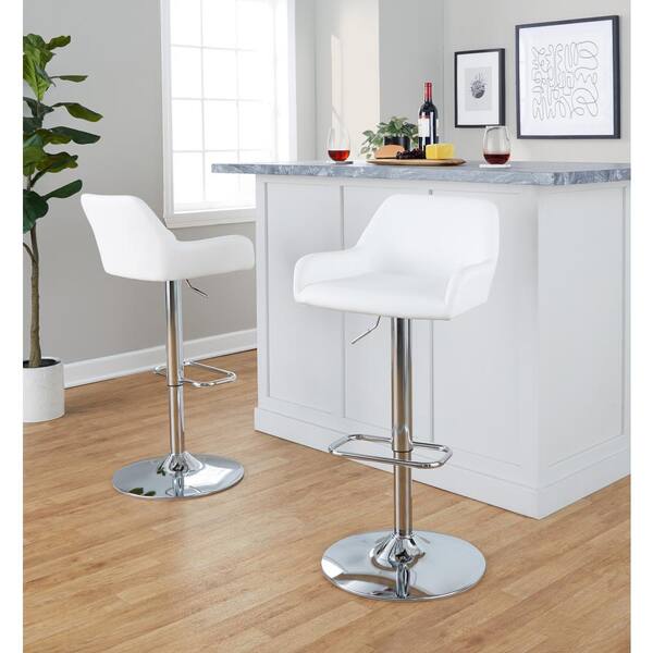 Daniella 32.25 in. White Faux Leather and Chrome Metal Adjustable Bar Stool (Set of 2)
