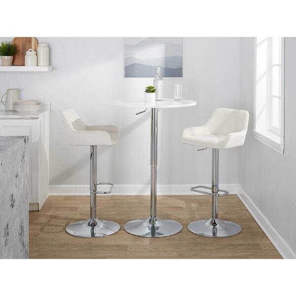 Daniella 32.25 in. White Velvet and Chrome Metal Adjustable Bar Stool (Set of 2)