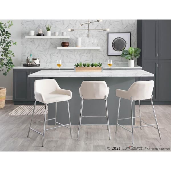 Daniella 33 in. Fixed-Height Cream Fabric and Chrome Counter Height Bar Stool (Set of 2)