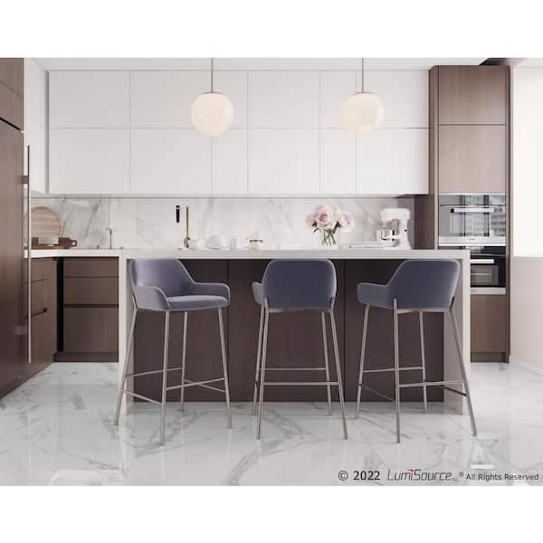 Daniella 38 in. Fixed Height Silver Velvet and Chrome Bar Stool (Set of 2)