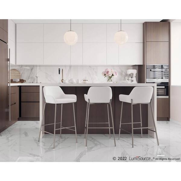 Daniella 38 in. Fixed Height White Faux Leather and Chrome Bar Stool (Set of 2)