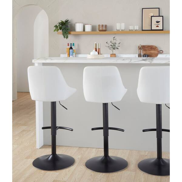 Diana Black Metal and White Faux Leather Adjustable Barstool (Set of 2)