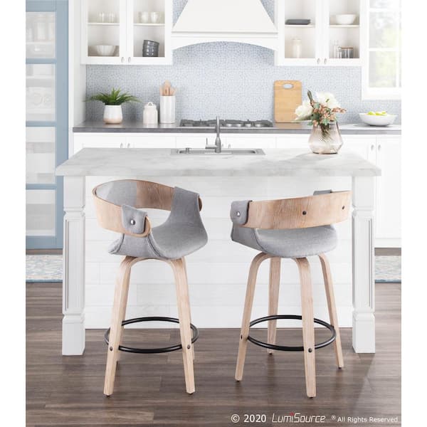 Elisa 34.5 in. Counter Height Bar Stool in Grey Fabric and White Washed Wood (Set of 2)