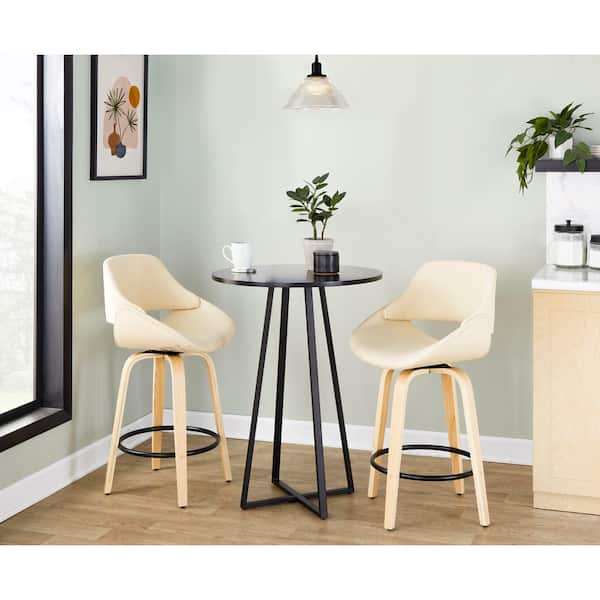 Fabrico 26 in. Natural Wood, Cream Faux Leather, and Black Metal Fixed-Height Counter Stool (Set of 2)