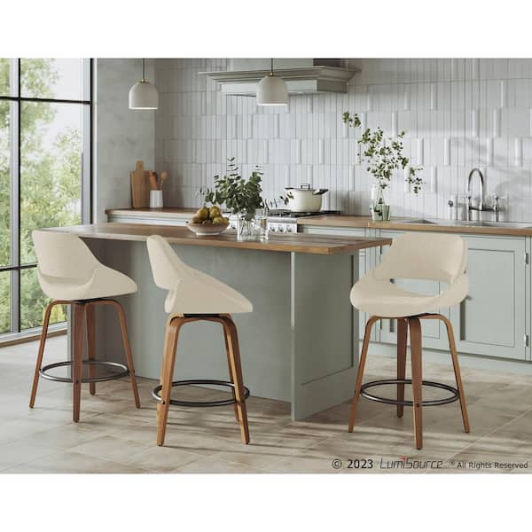Fabrico 26 in. Walnut and Cream Fabric Counter Stool with Black Footrest (Set of 2)