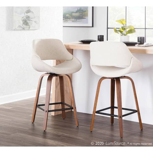 Fabrico 26 in. Walnut and Cream Fabric Counter Stool with Square Black Footrest (Set of 2)