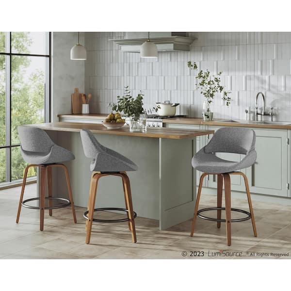Fabrico 26 in. Walnut and Grey Counter Stool with Black Footrest (Set of 2)