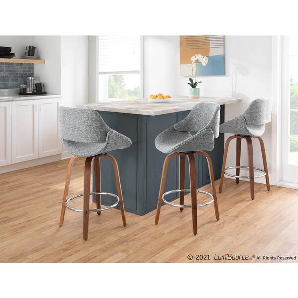 Fabrico 26 in. Walnut and Grey Fabric Counter Stool with Chrome Footrest (Set of 2)