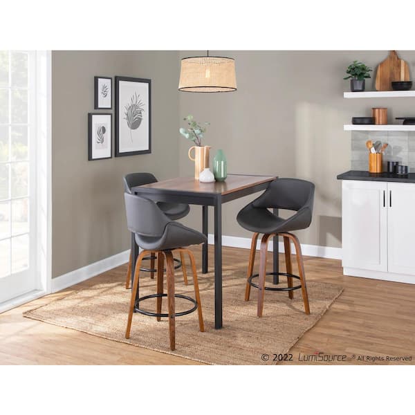 Fabrico 38 in. Grey Faux Leather and Walnut Wood High Back Counter H Bar Stool with Round Black Footrest (Set of 2)