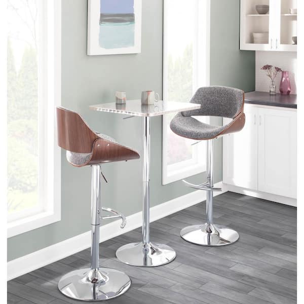 Fabrizzi 33 in. Grey Noise Fabric, Chrome Metal, and Walnut Adjustable Bar Stool (Set of 3)