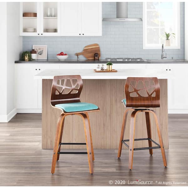 Folia 26 in. Counter Stool in Walnut Wood and Teal Fabric (Set of 2)