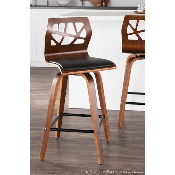 Folia 26 in. Walnut Wood and Black Faux Leather Counter Stool (Set of 2)