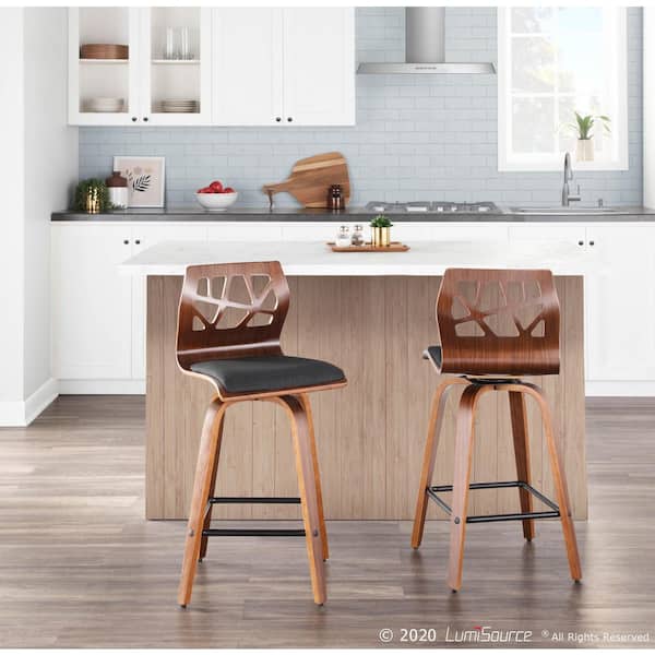 Folia 36 in. Charcoal Fabric and Walnut Wood High Back Counter Height Bar Stool with Square Black Footrest (Set of 2)