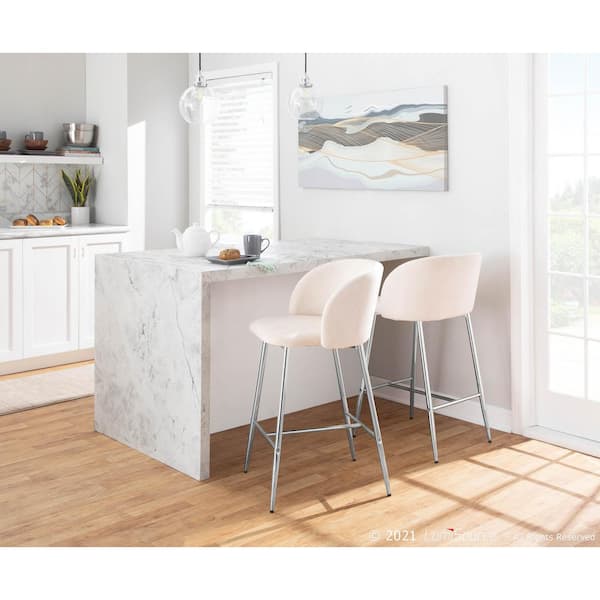 Fran 26.5 in. Cream Velvet and Chrome Metal Counter Height Bar Stool (Set of 2)