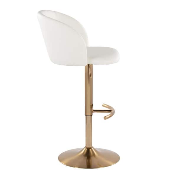 Fran 32 in. White Faux Leather and Gold Metal Adjustable Barstool (Set of 2)