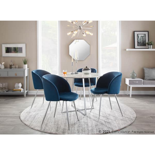 Fran Blue Velvet and Chrome Dining Arm Chair (Set of 2)