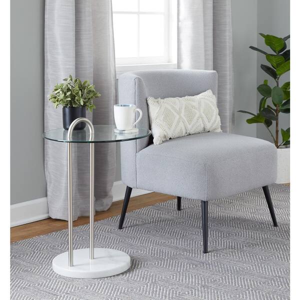 Fran Light Grey Sherpa and Black Metal Slipper Chair