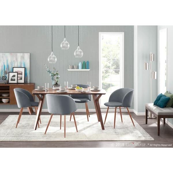 Fran Walnut and Grey Velvet Dining Chair (Set of 2)