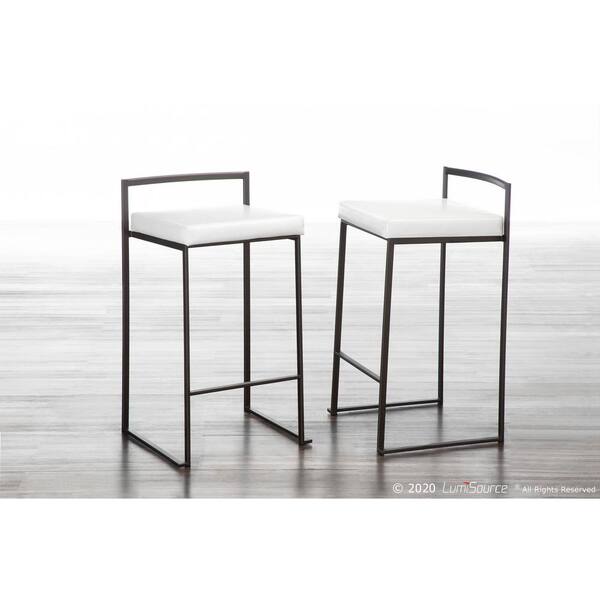 Fuji 26 in. Antique Stackable Counter Stool with White Faux Leather Cushion (Set of 2)