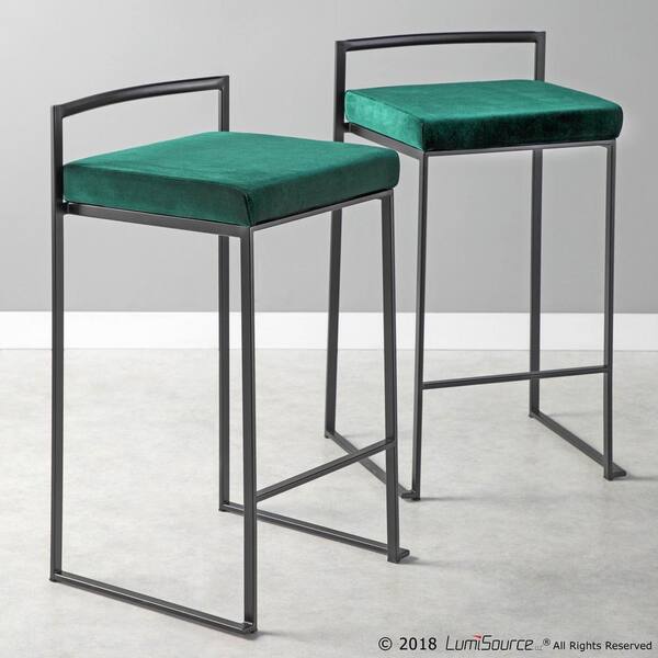 Fuji 26 in. Black Stackable Counter Stool with Green Velvet Cushion (Set of 2)