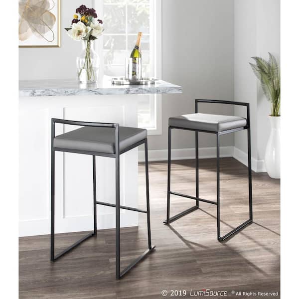Fuji 26 in. Black Stackable Counter Stool with Grey Faux Leather Cushion (Set of 2)