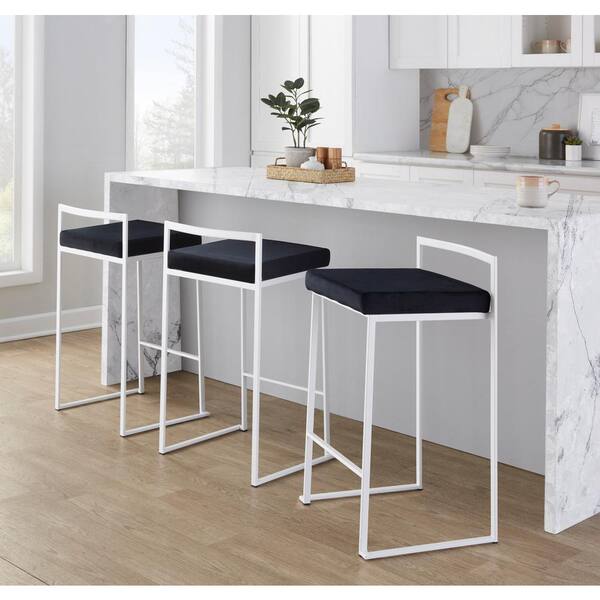 Fuji 26 in. White Stackable Counter Stool with Black Velvet Cushion (Set of 2)