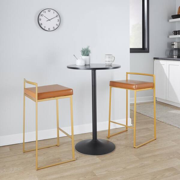 Fuji 27.75 in. Camel Faux Leather and Gold Metal Stackable Counter Stool (Set of 3)