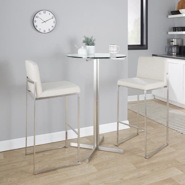 Fuji 31 in. Beige Fabric and Stainless Steel Metal High Back Bar Stool (Set of 2)