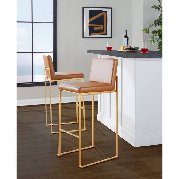 Fuji 31 in. Camel Faux Leather and Gold Metal Fixed-Height Barstool (Set of 2)