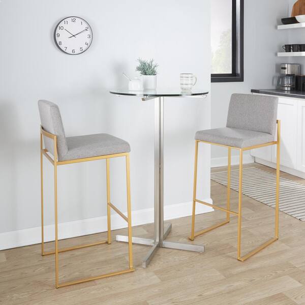Fuji 31 in. Grey Fabric and Gold Metal High Back Bar Stool (Set of 2)