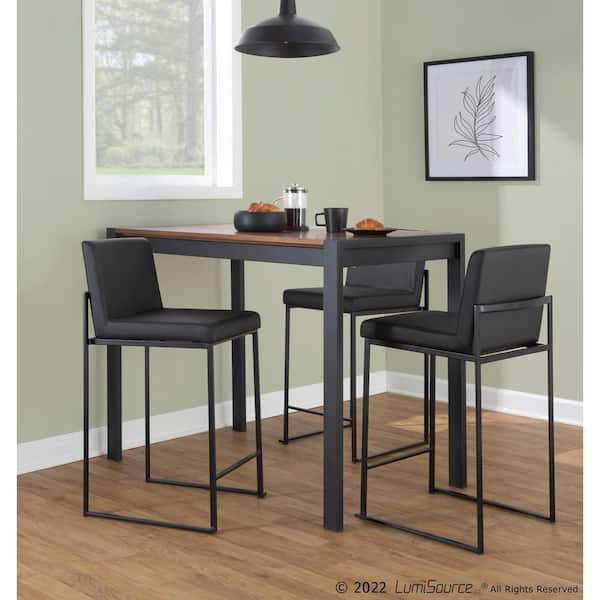 Fuji 35.5 in. Black Faux Leather and Black Steel High Back Counter Height Bar Stool (Set of 2)