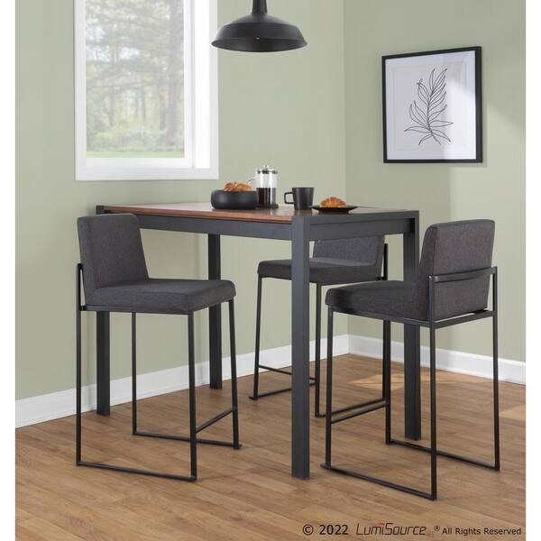 Fuji 35.5 in. Charcoal Fabric and Black Steel High Back Counter Height Bar Stool (Set of 2)