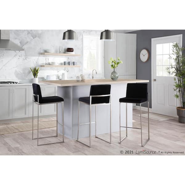 Fuji 40.5 in. Black Velvet and Stainless Steel High Back Bar Stool (Set of 2)