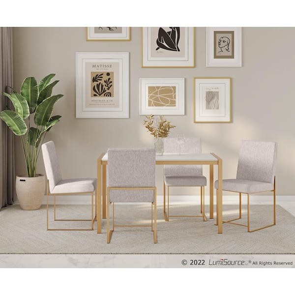 Fuji Beige Fabric Gold High Back Side Dining Chair (Set of 2)