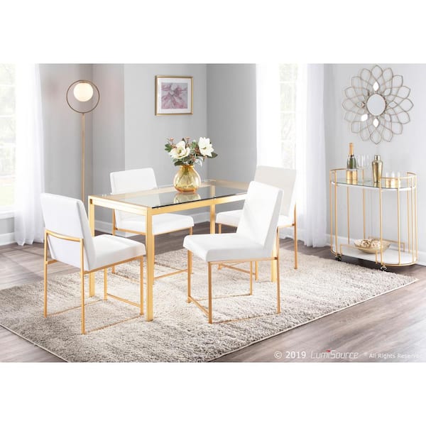 Fuji White Velvet Gold High Back Dining Chair (Set of 2)