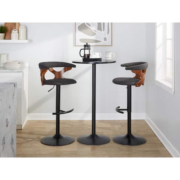 Gardenia 32.5 in. Charcoal Fabric, Walnut Wood and Black Metal Adjustable Bar Stool (Set of 2)