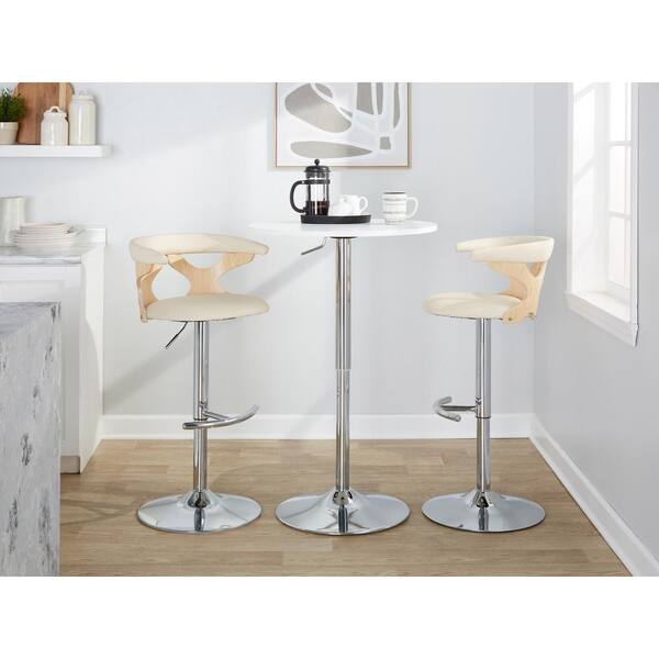 Gardenia 32.5 in. Cream Faux Leather, Natural Wood and Chrome Metal Adjustable Bar Stool (Set of 2)