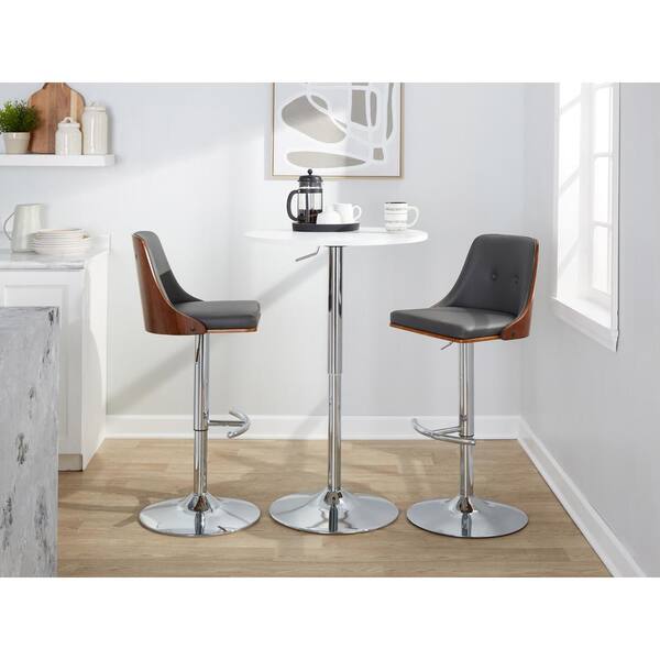 Gianna 32.75 in. Grey Faux Leather, Walnut Wood and Chrome Metal Adjustable Bar Stool (Set of 2)