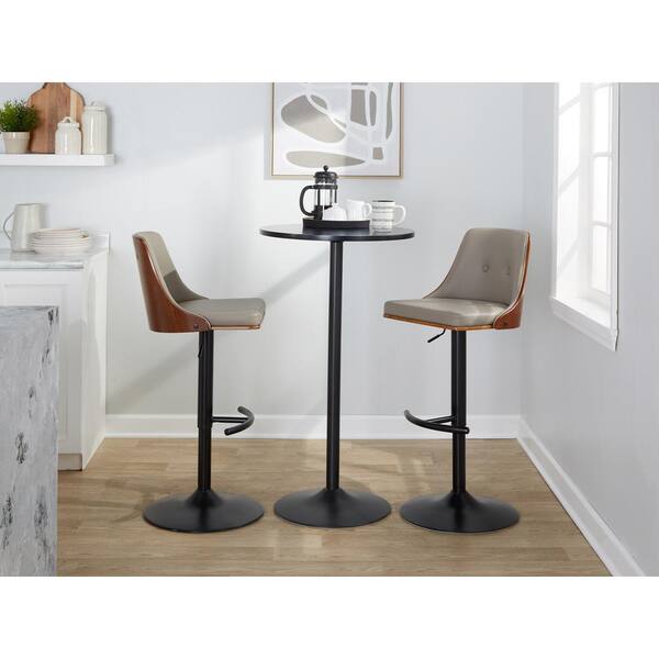 Gianna 32.75 in. Light Grey Faux Leather, Walnut Wood and Black Metal Adjustable Bar Stool (Set of 2)